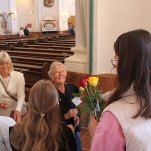 Im Anschluss an den Gottesdienst erhielt jede Frau als Zeichen der Wertschätzung eine Rose.
